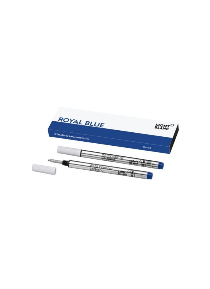 Montblanc finelinervullingen Royal Blue, geschikt voor alle Montblanc rollers behalve Meisterstück LeGrand, Montblanc M en Heritage zonder dop. Verpakkingseenheid: 2 stuks. Verkrijgbaar in Broad.