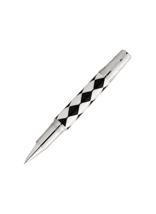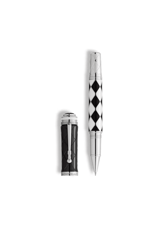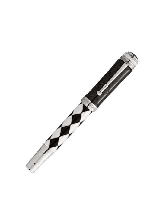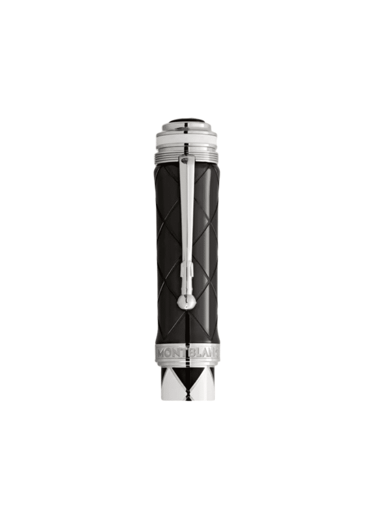 In de rijke geschiedenis van de rockmuziek zijn er maar weinig namen die zo consistent hebben geschitterd als die van Queen. Met een carrière van meer dan vijf decennia is de band één van de meest succesvolle ter wereld aller tijden. Gedurende deze periode belichaamde Queen de kracht van muzikale creativiteit en stonden met de meeste van hun nummers wekenlang bovenaan de hitlijsten. Ze creëerden een soort eigen muzikaal universum, bestaande uit een combinatie van hardrock, glamrock, pop, funk en opera,waarmee ze de grenzen tussen de genres doorbraken. Montblanc draagt zijn Great Characters Homage to Queen Limited Edition 1975 op aan deze iconen van de rockmuziek, geïnspireerd door het album A Night at the Opera. Zwart en wit, geen enkele andere kleurencombinatie beschrijft zo’n schril contrast en geen enkele andere zou de omvang van het muzikale universum van Queen beter kunnen symboliseren. De Limited Edition 1975 verschijnt ook in deze contrasterende gedaante. De vier muzikanten: Freddy Mercury, de charismatische frontman meteen stembereik van meerdere octaven en een rijk vibrato; Brain May, de virtuoze gitarist met zijn onmiskenbare elektrische gitaar geluid; John Deacon, deveelzijdige en creatieve bassist; en Roger Taylor, het ritmische hart van de band zijn als eerbetoon op een gestileerde wijze vereeuwigd op de zwarte dop van de pen, gebaseerd op de iconische albumhoezen van Queen II en Hot Space. Mercury was bekend voor zijn flamboyante podiumkostuums, zijn beroemde strakke bodysuit met zwart-witte ruitjespatroon onderstreepte zijn onconventionele podiumpersoonlijkheid en inspireerde het ruitvormige ontwerp van de pen. Naas tde stem van Freddy Mercury was het uitstekende gitaarspel van Brain May de sleutel tot het bijzondere geluid van de band. De cone aan de bovenzijde van de pen is geïnspireerd op de karakteristieke volume- en toonregelaars van zijn beroemde elektrische gitaar en is voorzien van een delicaat geribbeld patroon, en een gravure van het A Night at the Opera album en het jaar van uitgave 1975. De kroon die Mercury droeg tijdens de slotuitvoering van God Save The Queen was de inspiratiebron voor het silhouet van de dop. De met platina gecoate clip lijkt op een microfoonstandaard, een verwijzing naar de liveoptredens van FreddyMercury.