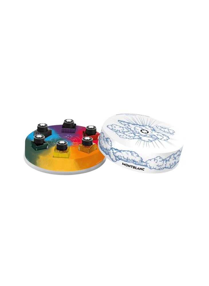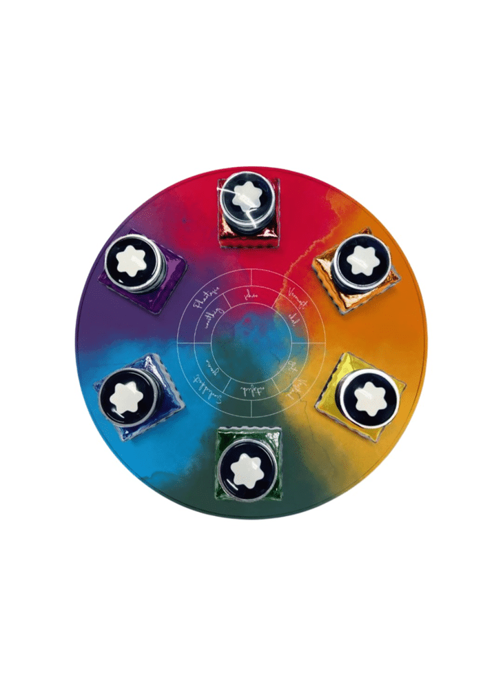 De Writers Edition Homage to Johann Wolfgang von Goethe inktflesjes set is een eerbetoon aan de kleurentheorie van Goethe. Het kleurenwiel heeft zes verschillende inktkleuren: Amethist paars, Egyptisch blauw, Modena rood, Mangaan oranje, Goud geel en Iers groen. Elk flesje bevat 30ml. inkt van hoge kwaliteit en is geschikt voor alle vulpennen.