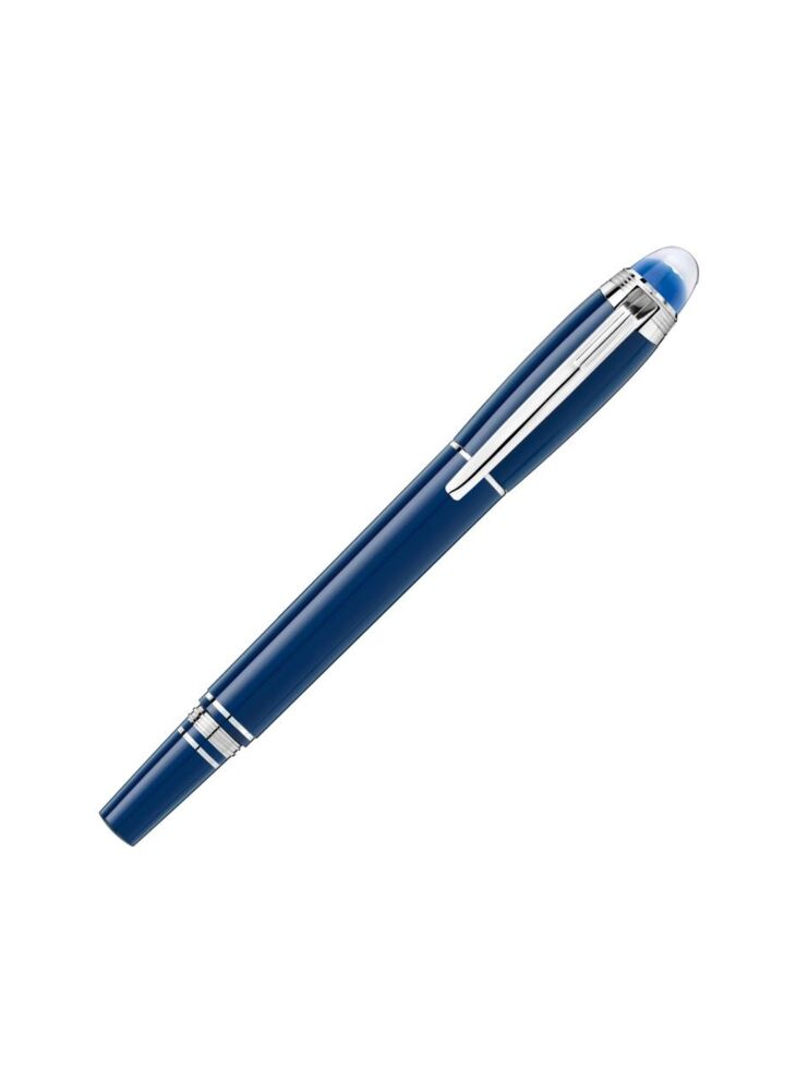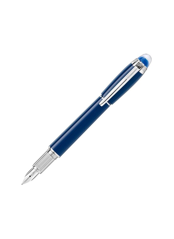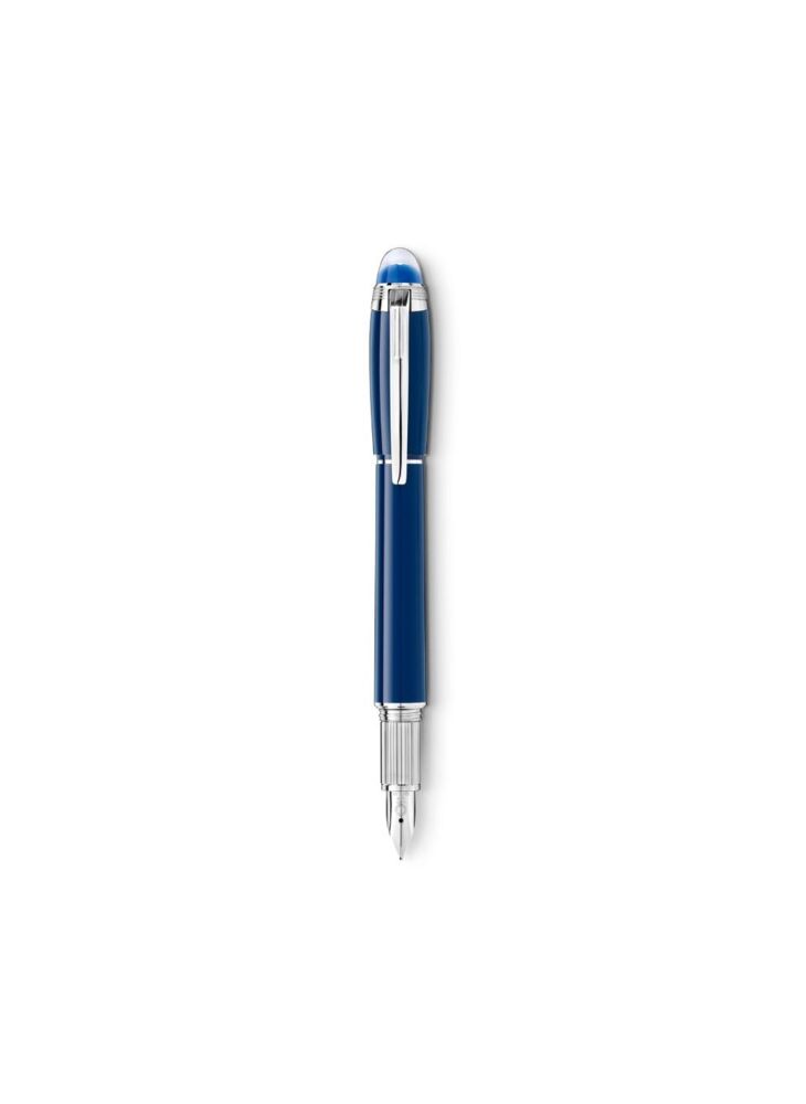 De Starwalker Blue Planet van Montblanc gaat over wandelen tussen de sterren, het verkennen van de kosmos en vreemde sterrenstelsels en deel uitmaken van één van de meest mysterieuze en krachtige avonturen die de mensheid ooit heeft ondernomen: verkenning van de ruimte. Als we inzoomen op de planeet, laat Montblanc zich inspireren door het blauwe water, de bron van het leven op Aarde. Deze Starwalker Blue Planet vulpen is gemaakt van een kostbare edelhars en heeft een diep blauwe kleur die de pen een professionele look geeft met een moderne toets. De witte ster in de transparante clip dop rust op een blauwe koepel en van bovenaf herken je direct het vertrouwde beeldmerk van Montblanc. De vulpen heeft een handgemaakte, gerhodineerde 14 karaats gouden penpunt.