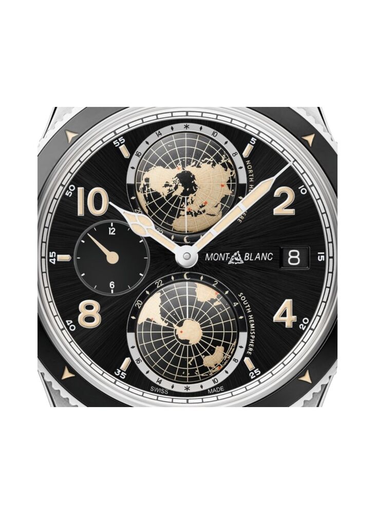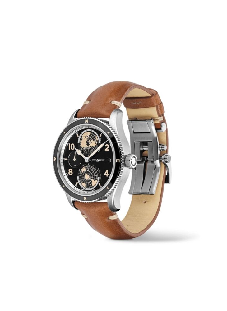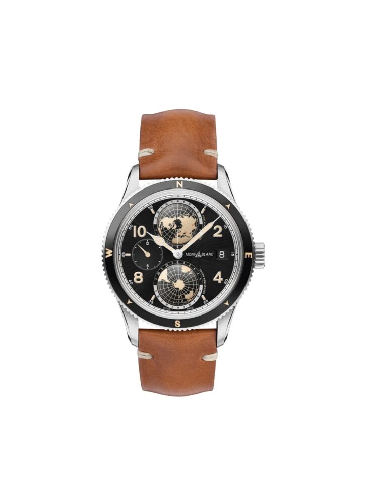 De Montblanc 1858 Collection is geïnspireerd op de legendarische professionele Minerva horloges uit de jaren 1920 en 1930, die werden ontworpen voor militair gebruik en verkenning. Door deze historische uurwerken opnieuw te interpreteren, geeft de Montblanc 1858 Collection een nieuwe uitdrukking aan de geest van verkenning in de bergen en de terugkeer naar de natuur. De Montblanc 1858 Geosphere is opgedragen aan de Seven Summits, de zeven hoogste bergen van de continenten, de heilige graal van de avontuurlijke bergbeklimmer. Dit uurwerk komt in een 42mm titanium kast gecombineerd met een contrasterende ijzig witte design details, geïnspireerd op de kleur van de gletsjers. Dit uurwerk is voorzien van wereldtijd complicatie, ontwikkeld door de Montblanc horlogemakers in Villeret samen met een dag en nacht indicatie in contrasterende kleuren. Het horloge heeft een bruin Sfumato kalfslederen polsband met witte stiksels