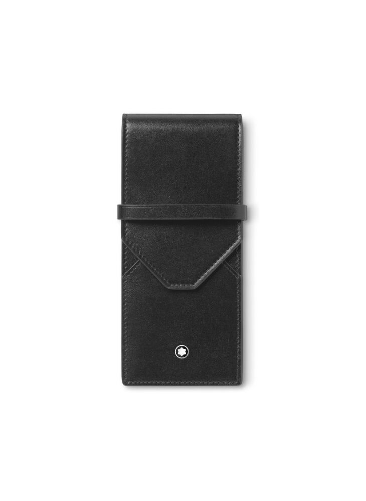De Meisterstück collectie is opgewaardeerd met eigentijdse vormen, nieuwe designdetails en een luxueus nieuw kalfsleer met een zachtere touch. Een diepere zwarttint met de kenmerkende glanzende afwerking dragen bij aan de verfijning en elegantie van alle Montblanc accessoires. Deze Meisterstück etui is gemaakt voor drie pennen op een stijlvolle en veilige manier op te bergen. Afmetingen: 7x16 cm.